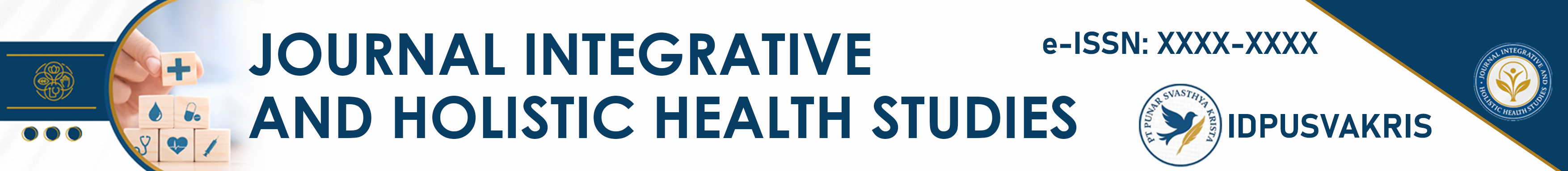 Journal Integrative and Holistic Health Studies Published by IDPUSVAKRIS Published monthly Managed by PT PUNAR SVASTHYA KRISTA Accepting research manuscripts in the field of health, especially in the field of nursing e-ISSN: XXXX-XXXX. Journal Integrative and Holistic Health Studies is a scientific journal containing research results from the field of nursing science, such as basic nursing, medical surgery, critical and emergency, maternity, mental, community, geriatric, management and other health related to nursing. Journal Integrative and Holistic Health Studies is a scientific journal that has a focus and scope in the field of nursing science, such as basic nursing, medical surgery, critical and emergency, maternity, mental, community, geriatric, management and other health related to nursing. Authors who want to submit their manuscript to the editorial office of Journal Integrative and Holistic Health Studies should follow the writing guidelines. If the manuscript submitted is not appropriate with the guidelines or written in a different format, it will BE REJECTED by the editors before further review. The editors will only accept manuscripts that meet the assigned format.